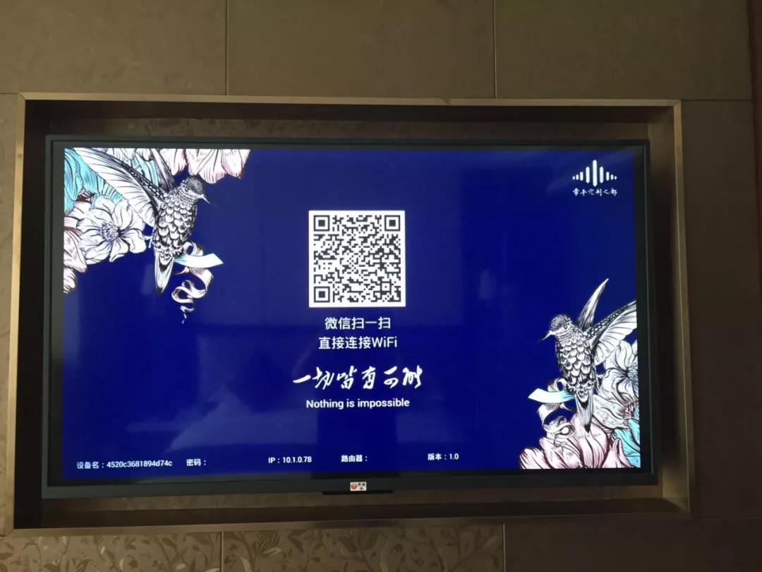 根据联力胜工程师介绍:软件升级后的试运行平台功能大大提升,通过扫一扫电视屏幕上二维码就可以连接WiFi,省掉了输入用户名和密码的麻烦。除此以外,还增加了“手机互动”栏,只要微信扫一扫富贵鸟二维码,直接进入“定制之都”商城。