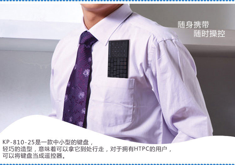 KP-810-25键盘最大特点是无线传输+多点触摸相结合,广泛应用于家庭娱乐丶教育丶培训丶会议丶演讲和投影仪。另外,KP-810-25键盘是iPAD的最佳搭配。其机身超薄,值得拥有。