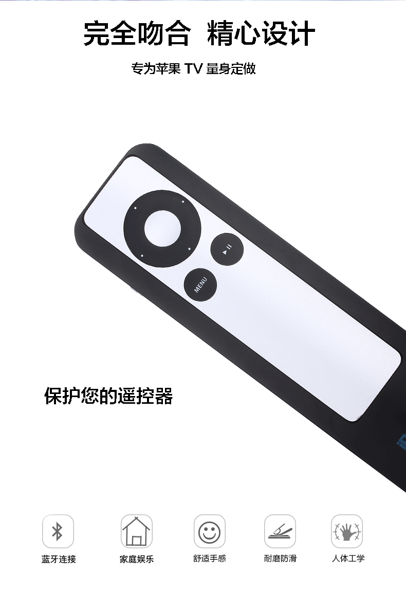 带内嵌凹槽,这款迷你无线蓝牙键盘专为您提供字符输入功能,还可将您的小型Apple TV第2和第3遥控器固定在一起,保护防止丢失你的原装苹果遥控器。