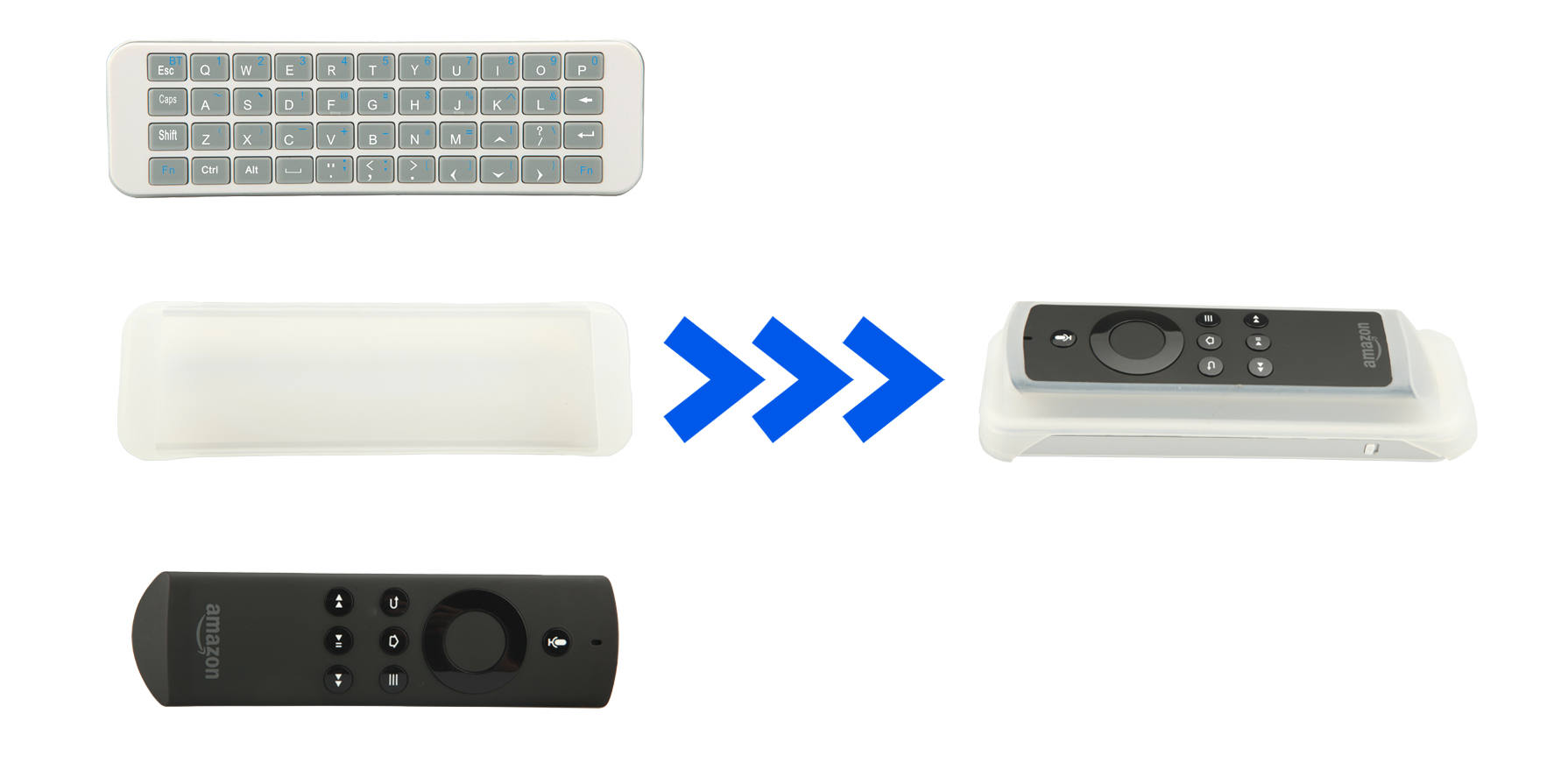 这是一款更新的背光版迷你蓝牙QWRTY传统键盘,可拆卸的硅胶套可将原装遥控变成一个统一的整体,一方面可促进数据的快速输入,另一方面对原装遥控起到保护作用。同时,拆开硅胶套,此键盘还用于其他蓝牙装置,有广泛的兼容性。