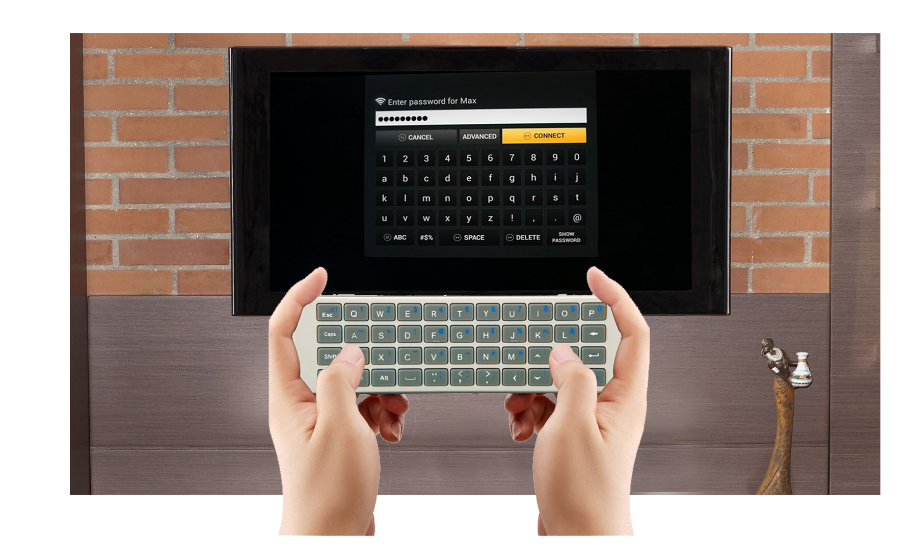 - 键盘输入文本,翻转它就可以使用原装遥控器
