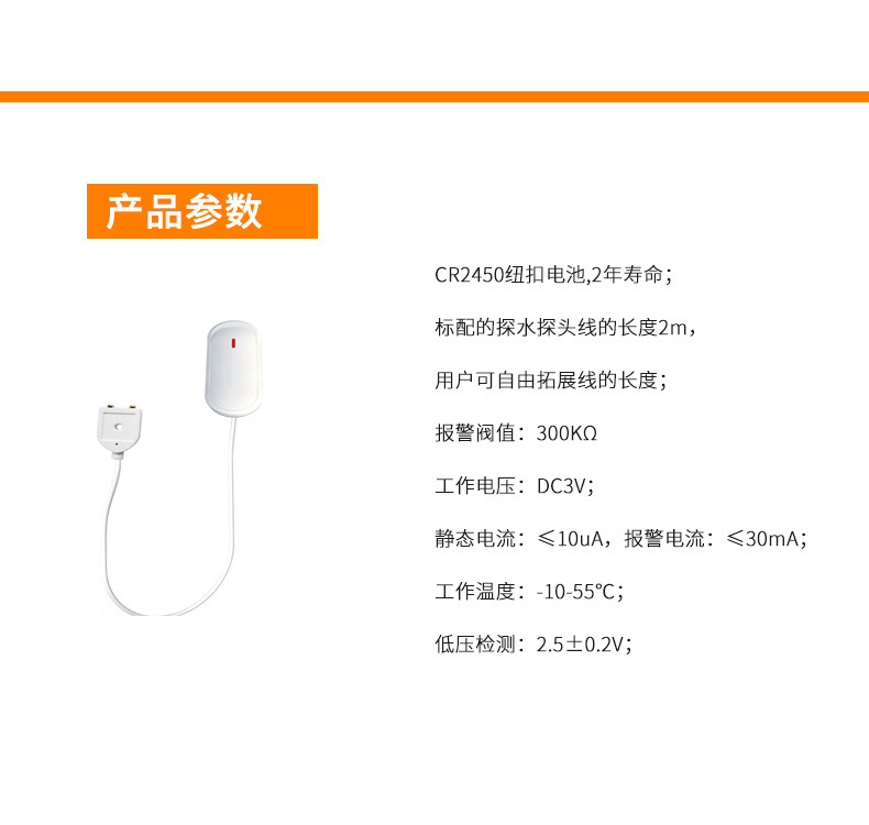 DS 005 00003 水浸传感器(ZigBee)是一款基于液体导电原理,用电极探测是否有水存在,再用传感器转换成干接点输出。