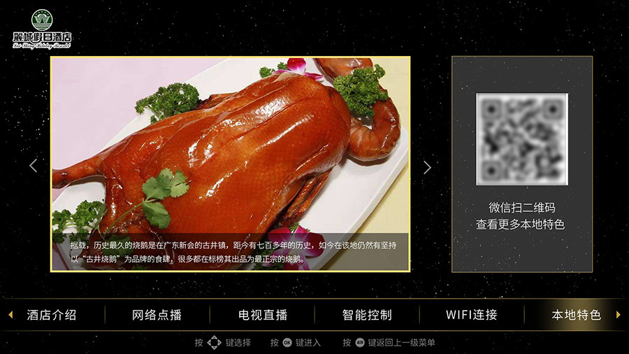传统酒店的影音系统可以选择播放的视频微乎其微,而电视直播即经常插入无聊广告,更令住客厌恶得是推销产品的广告,循环重复播放。联力胜智慧酒店系统方案升级后,切入了“连接WIFI”菜单。简单地说:这是一个手机多屏互动功能的引入。