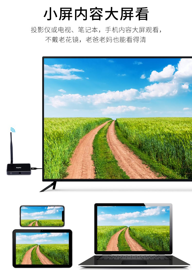 家庭娱乐,商务会议,PPT演示, 设备要求: 支持Miracast协议的Android手机和平板电脑; 支持Airplay的iPhone和iPad(镜像屏幕) 包装配件: - 同屏器 1 - HDMI线 1 - 电源适配器: 1 - 说明书 1 - 外置天线 1 |